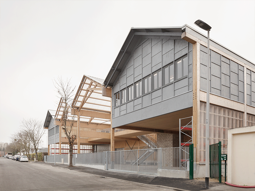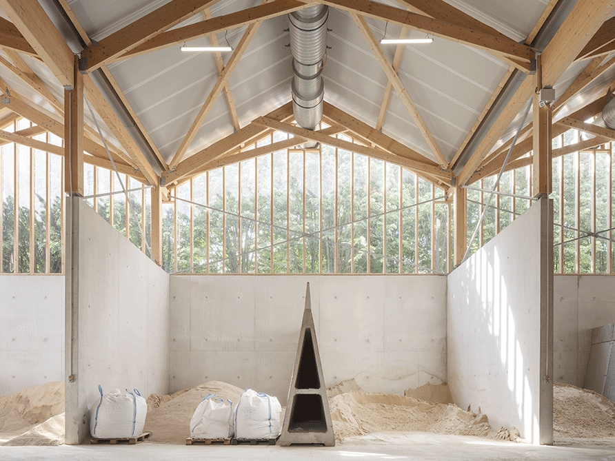C’est ici que les terres excavées des chantiers du Grand Paris seront transformées pour réaliser des logements, des bureaux, des écoles et tout type d’équipement. Au cœur de la fabrique, seront produites localement près de 10 000 tonnes de matériaux en terre crue par an, sous forme d’enduits, de blocs de terre comprimée (BTC) et de mortiers. Inauguré le 29 novembre 2021, ce bâtiment en ossature bois de 2 200 m2, situé à deux pas du RER Sevran Beaudottes, est déjà en activité et répond à une dynamique d’économie circulaire et de production de matériaux constructifs géosourcés.