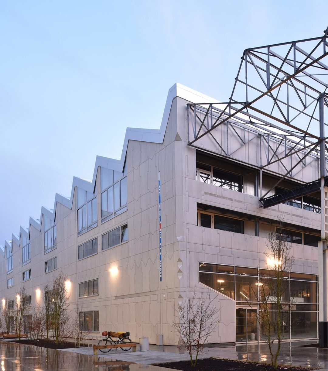 Le tout s’inscrit dans la continuité des Halles voisines, déjà réhabilitées, et reprend les volumes originels et les toitures en dents de scie, caractéristiques du passé industriel.