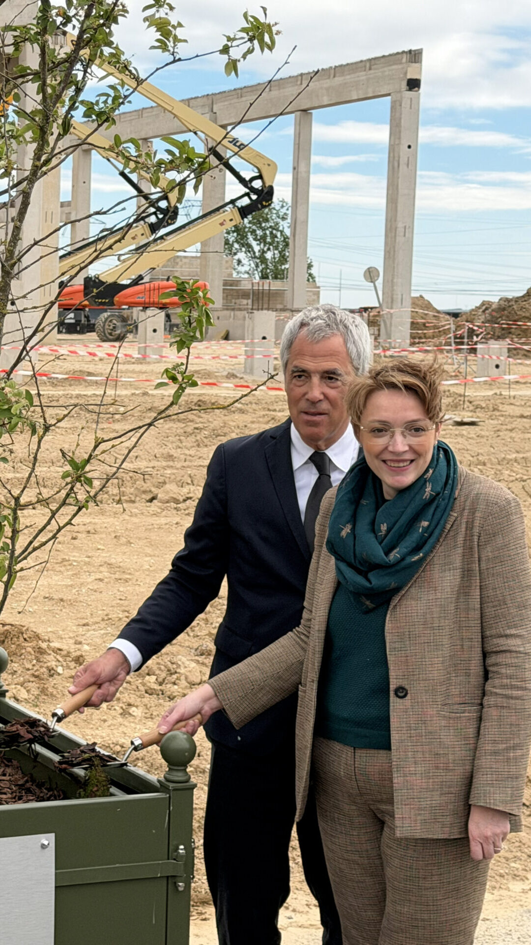 Le 15 avril 2026, Emmanuel Launiau, président du groupe QUARTUS, a planté avec Virginie de Carvalho, maire de Tremblay-en-France, et Justine Coutard, directrice générale déléguée d’Aéroports de Paris, le premier arbre de ce bâtiment de logistique urbaine de 47 000 m², développé pour ADP. Un geste symbolique pour un projet qui l’est tout autant.