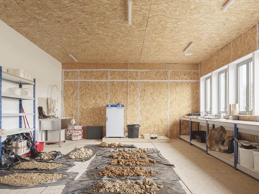 C’est ici que les terres excavées des chantiers du Grand Paris sont transformées pour réaliser des logements, des bureaux et des écoles. Au cœur de la Fabrique, seront recyclées localement près de 10 000 tonnes de terre par an, sous forme d’enduits, de blocs de terre comprimée (BTC) et de mortiers. Inauguré le 29 novembre 2021, ce bâtiment en ossature bois de 2 200 m², situé à deux pas du RER Sevran Beaudottes, répond à une dynamique d’économie circulaire et de production de matériaux constructifs géosourcés.