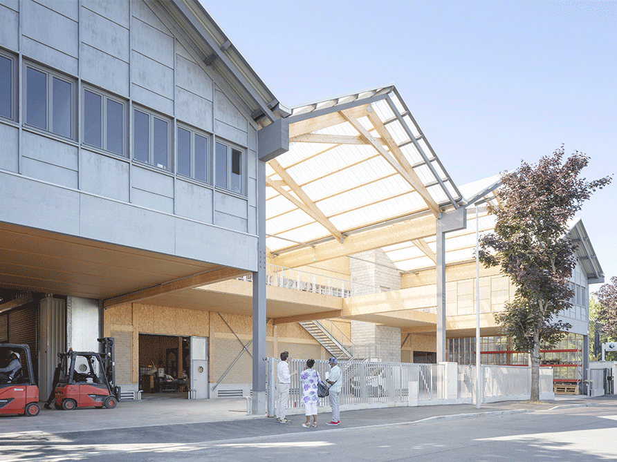 La Fabrique est l’exemple même de la ville bas-carbone. De sa conception à sa production, tout y est pensé dans une logique verte. Pour sortir de l’écriture industrielle, la fabrique se présente comme un bâtiment à haut volume redécoupé par 4 toitures doubles pentes, pour affirmer une échelle plus domestique. A travers le polycarbonate ondulé translucide, la structure bois et les matériaux naturels se dévoilent, atténuant ces grandes surfaces de façades. D’autres matériaux bio et géosourcés tels que la pierre, les fibres et la terre constituent le bâtiment, rappelant ainsi l’esthétique d’une fabrique artisanale.